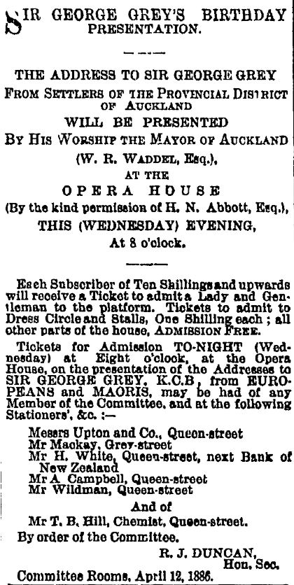| Auckland Star, 14 April 1886. |