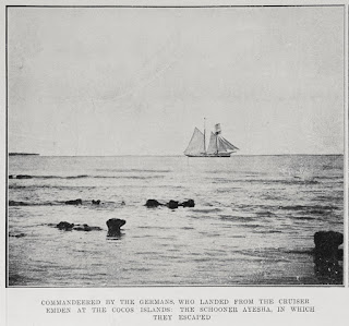 Direction Island they discovered a derelict schooner, the Ayesha, lying at anchor there. Von Mücke resolved to destroy the schooner as well, but fortunately